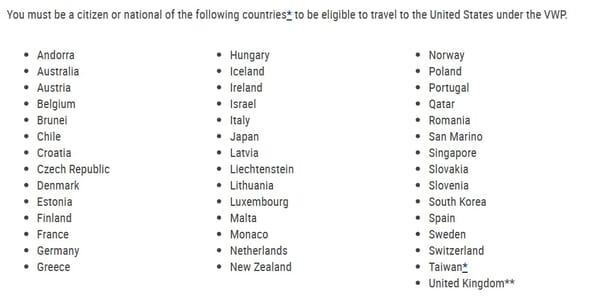 ESTA (citoyens faisant partie des pays exempter lister en image)