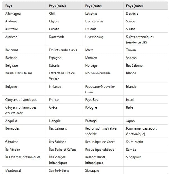 AVE (citoyens faisant partie des pays exempter lister en image)